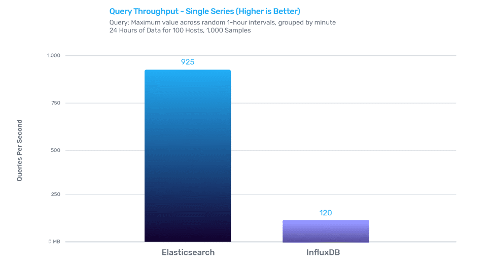 InfluxDB outperformed Elasticsearch for time series by delivering 9x better compression.