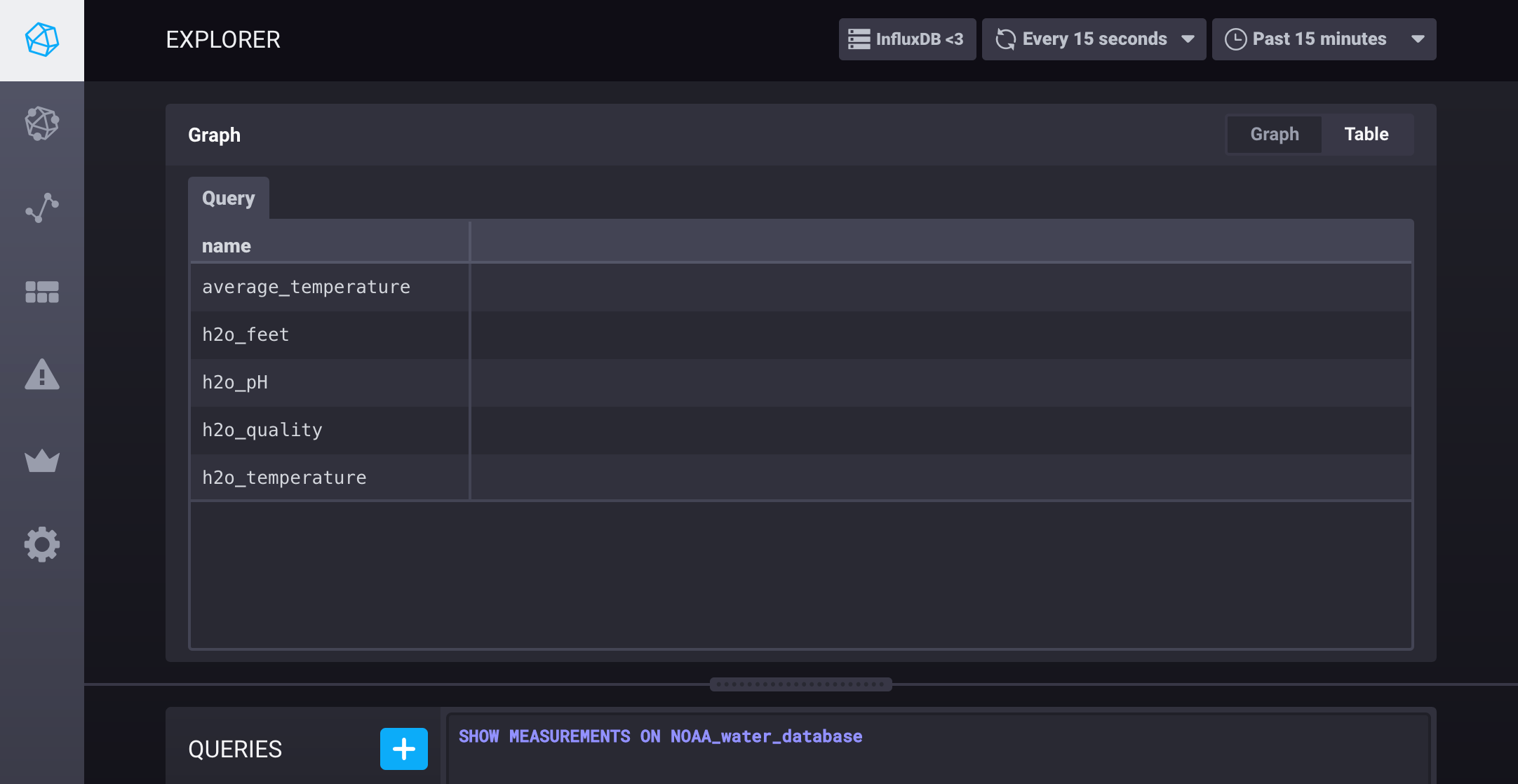 An example of running a SHOW query in Chronograf: