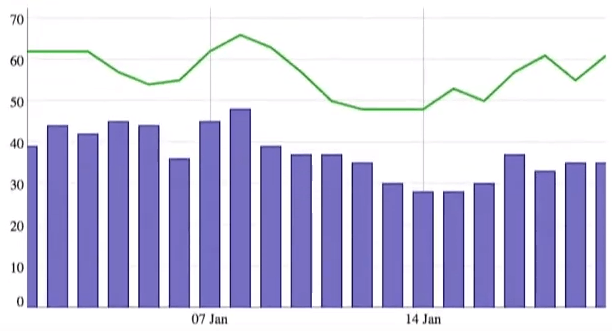 In the below chart example, a specialized plotter is used to draw a bar plot rather than a line plot.
