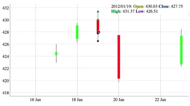 Below, a specialized plotter is used to combine four series into a unified “candle” plot.