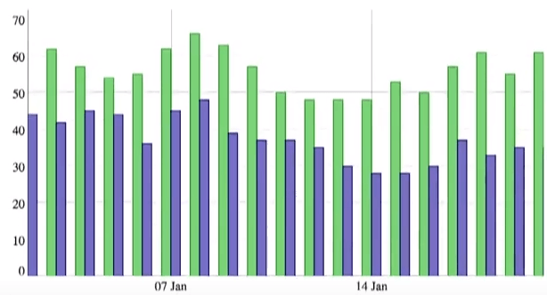 - Overlapping – can graph different time series on the same graph in order to compare them (as shown in the overlapping chart example below).