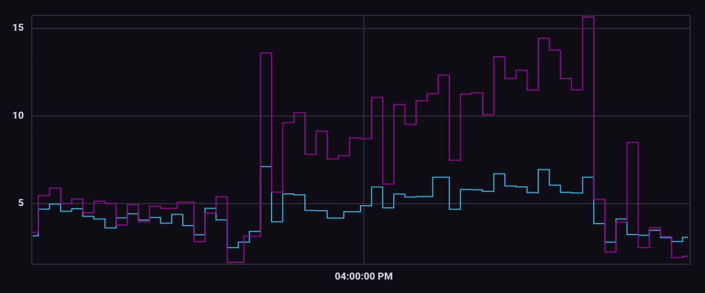 Custom time series graphs can also be built using Dygraphs — an open source JavaScript charting library in development since 2006. Dygraphs is an appealing visualization for dashboards due to its combination of performance and interactivity.