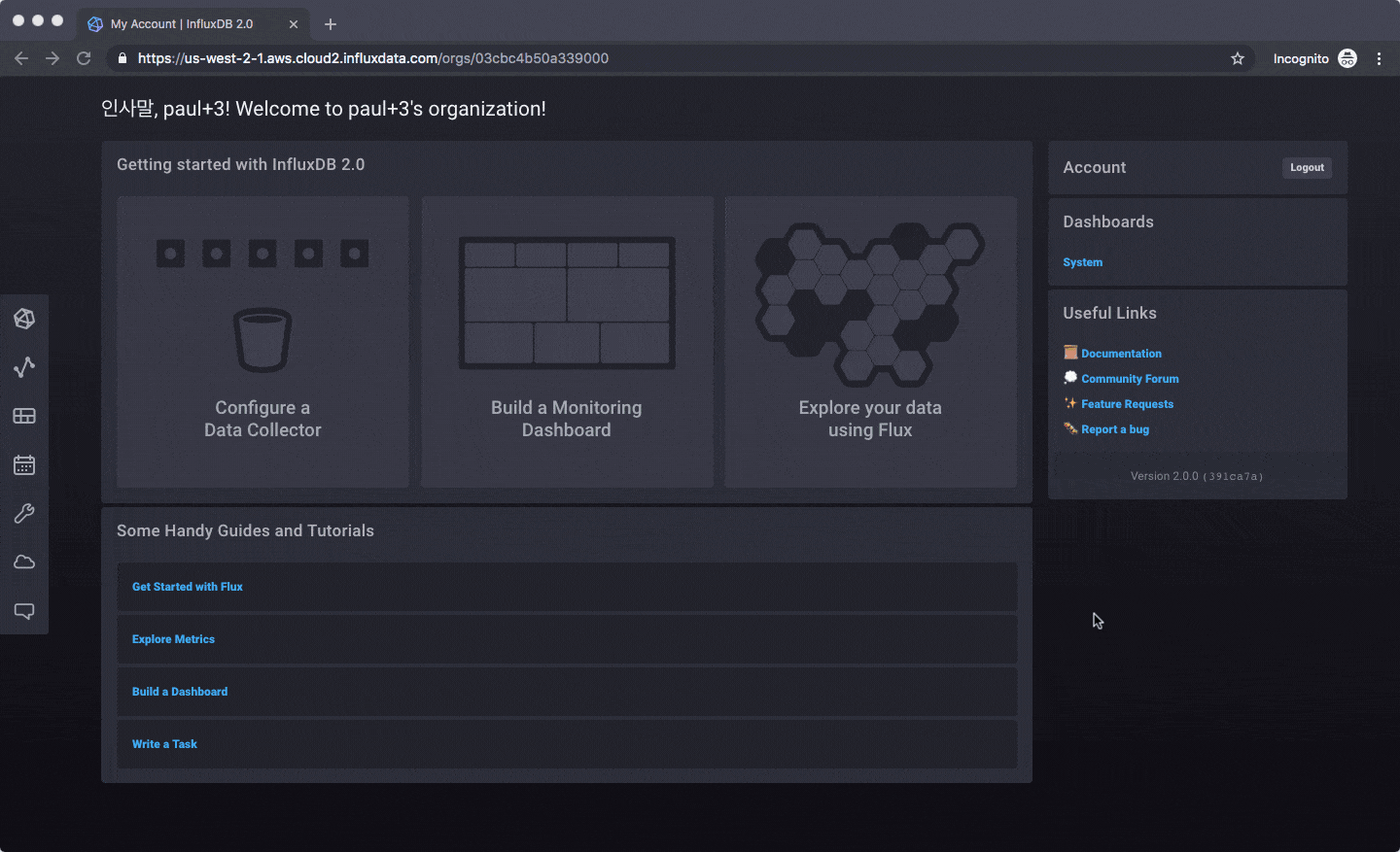 Once you have a token, you can write data or access the API using our officially supported client libraries. You can find the InfluxDB 2.0 Javascript library here or using the HTTP API with other libraries coming soon.