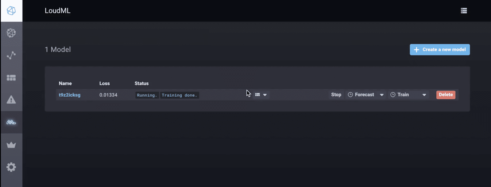 Once the training is completed, you can select a Forecast time interval to output a prediction onto.