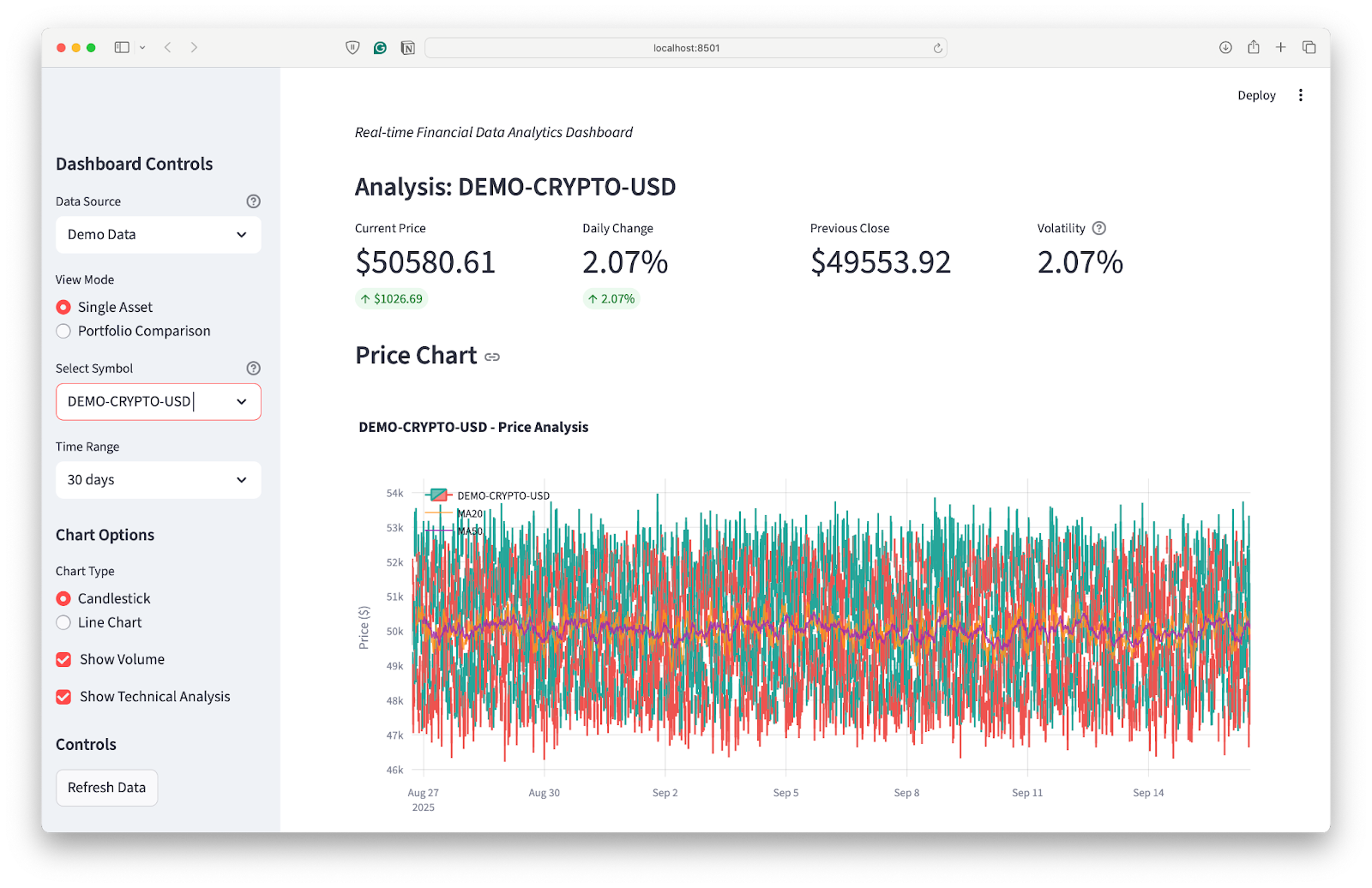 To demonstrate this integration, I’ve created a starter sample project that stores real and dummy stock and cryptocurrency prices in InfluxDB 3 Core and visualizes them in Streamlit. You are encouraged to download/fork and build on top of it for your use case or use it to learn how easy it is to integrate InfluxDB 3 with the Streamlit framework.