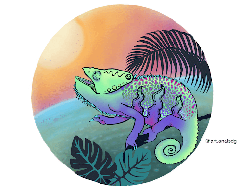 <figcaption> A drawing of a chameleon I made for your viewing pleasure</figcaption>