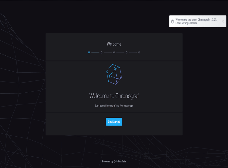After installing Chronograf (1.7.3 or higher), we get a warm welcome, which is new as of the 1.7.x line.