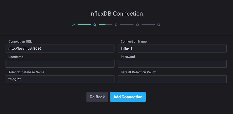 Through these onboarding steps, we can configure our InfluxDB settings or leave them as the default for now.