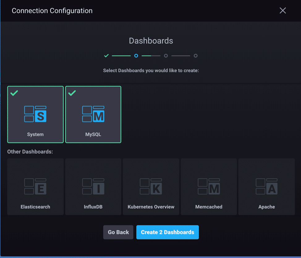 Both of the dashboards we selected during setup are listed (MySQL and System), but let’s make sure they actually work.