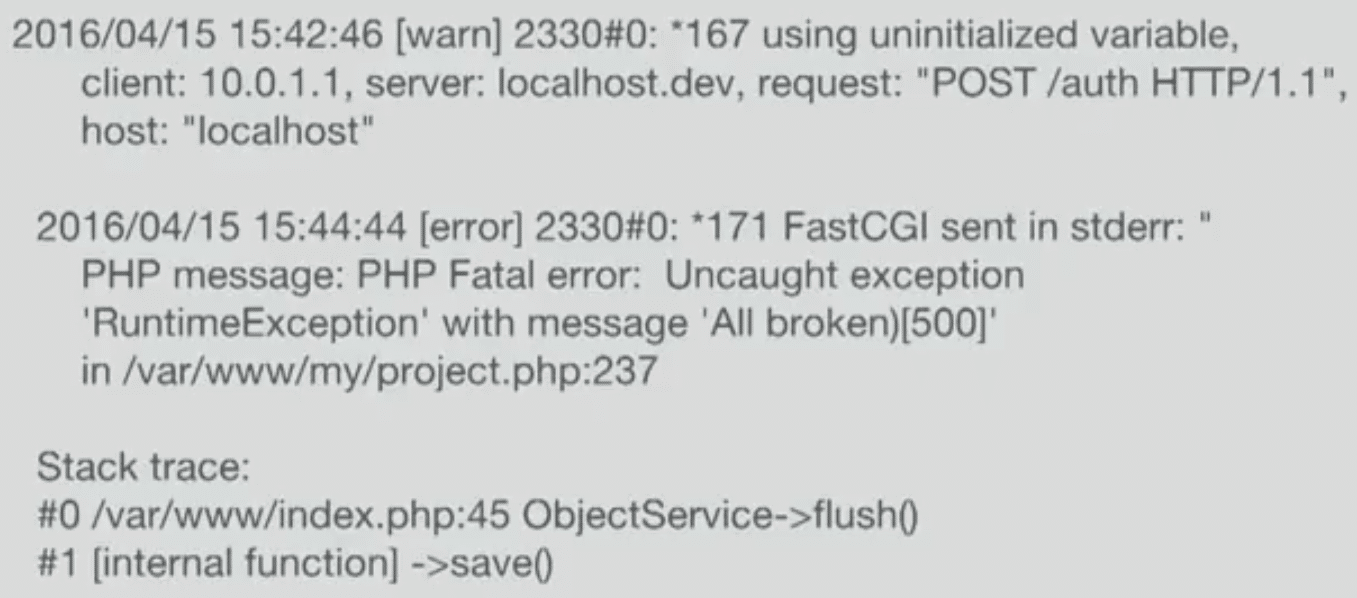 This isn’t the smartest way to understand how your application speaks, but it’s the most common way that everybody is using to monitor an application. We can definitely do something better now, and this relates to the nature of logs.
