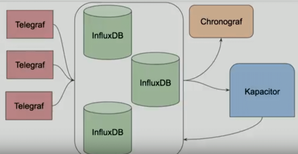 - InfluxDB is our storage engine. All the metrics that come from Telegraf are sent into InfluxDB.