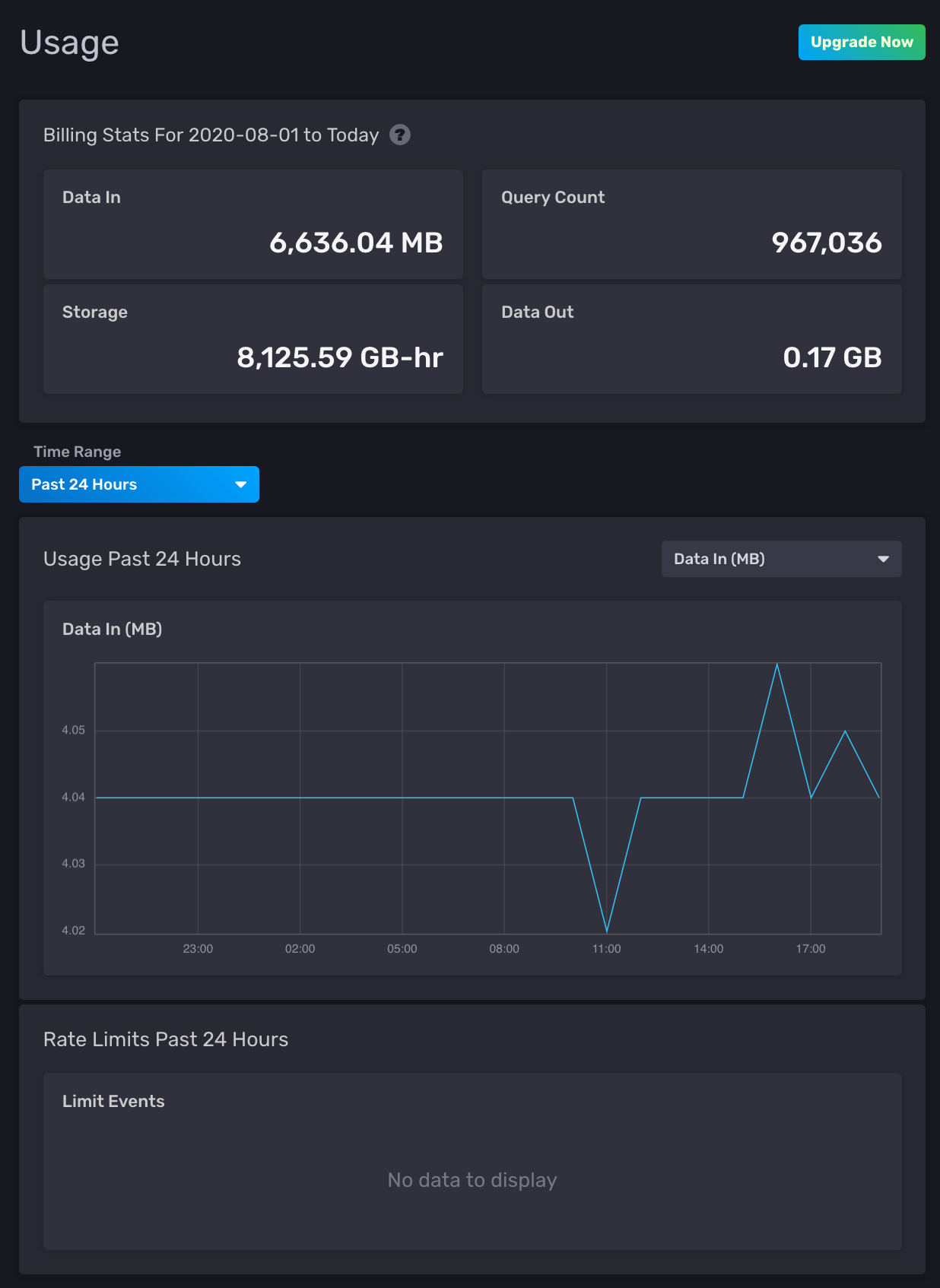 - Usage overages: Any recent rate limit overages related to Data In or Queries.