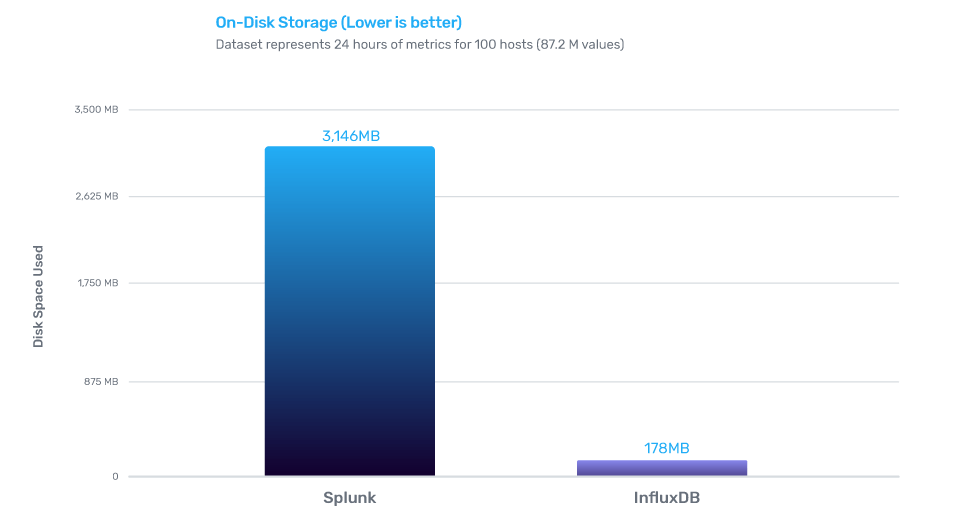 InfluxDB outperformed Splunk for time series by delivering 17x better compression.