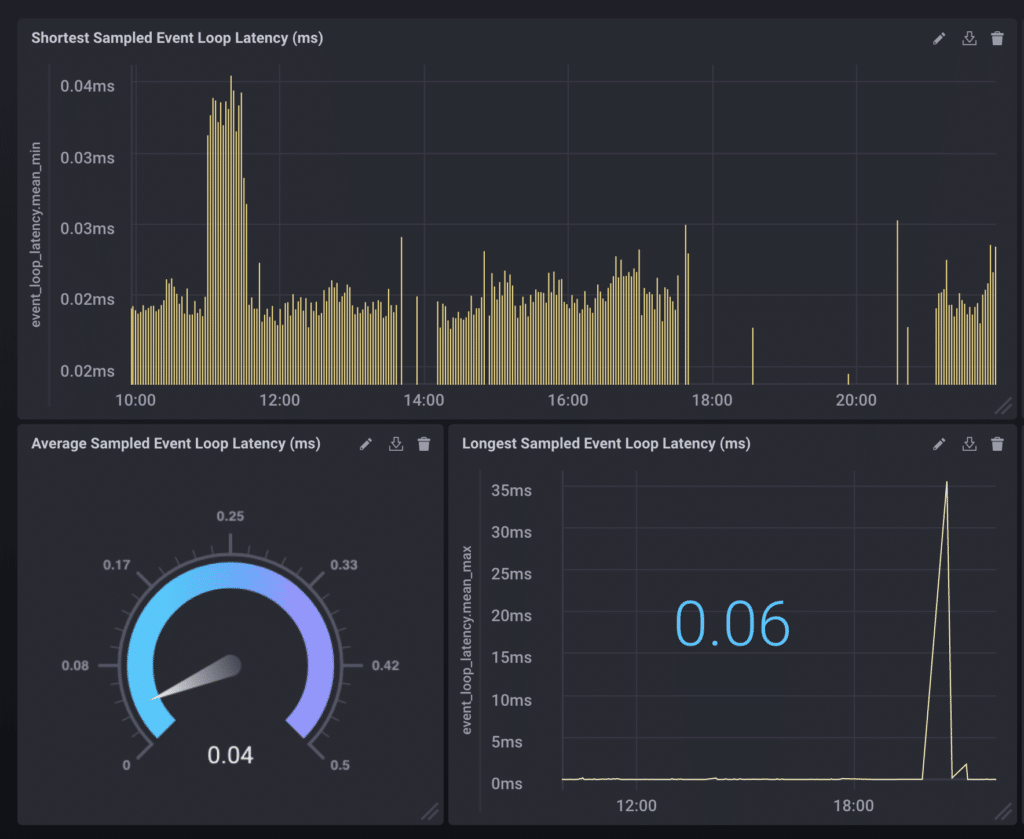 Because of Node.js’s nonblocking, single-threaded nature, it is extraordinarily fast in handling a multitude of events quickly and asynchronously. The event loop is responsible for this, and it would therefore behoove one to recognize and pinpoint any latencies present within the event loop that could be causing regression in application performance. Longer-lasting latency exacerbates each cycle of the event loop and could eventually slow down the app to a state of purgatory. If the server witnesses an increase in load, for example, this can lead to an increase in tasks per event loop, which will effect longer response times for the end user. Collecting data on these latencies can assist in the decision of whether to scale up the number of processes running the application and return performance levels to equilibrium.