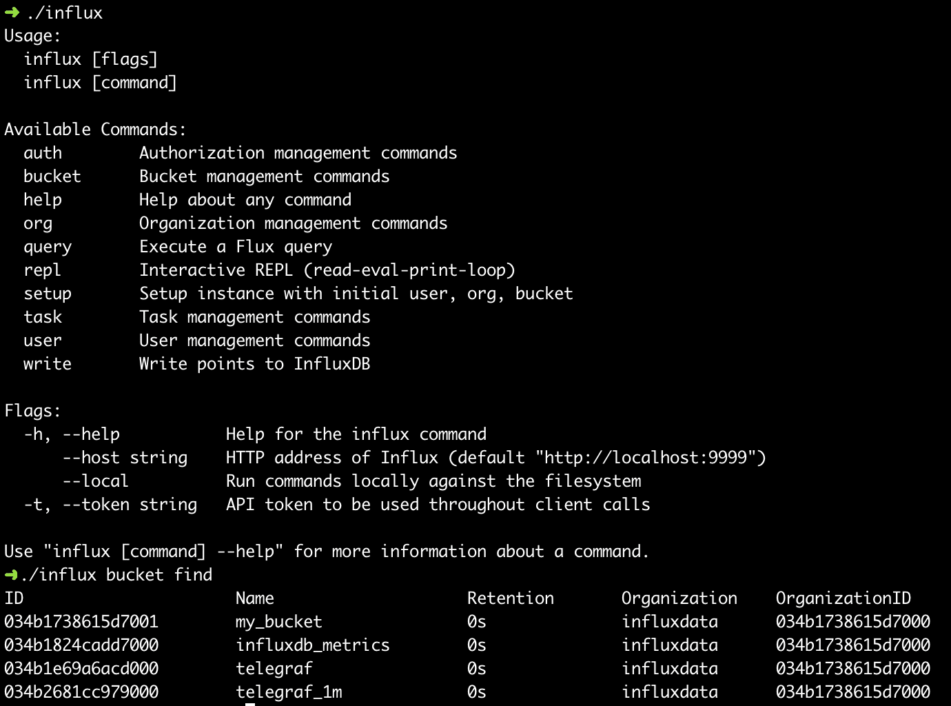 I’ve been highlighting the features and capabilities of the browser, but we also have a fully featured command line interface for interacting with InfluxDB 2.0. From the command line, you can do everything you can in the browser. The command line also contains an interactive shell for writing Flux queries, and the ability to script queries easily. Give it a spin and let us know what additional capabilities or enhancements you’d like to see.