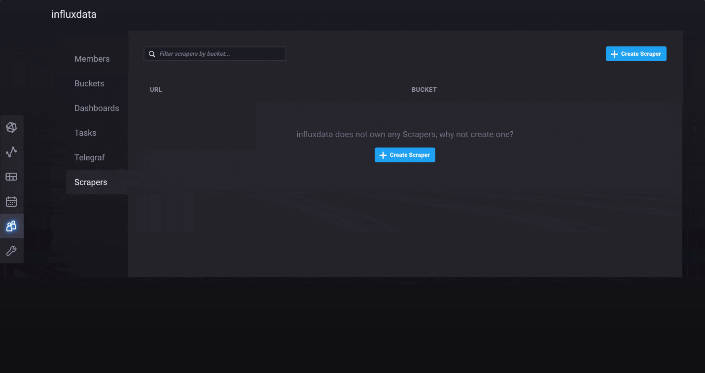 You’ll also need an organization, which acts as a workspace for you and your colleagues to share things like dashboards and queries, as well as a bucket, which is where you store your time series data with a retention policy.