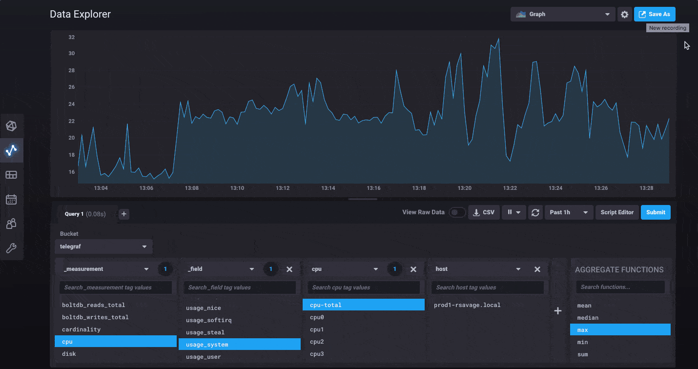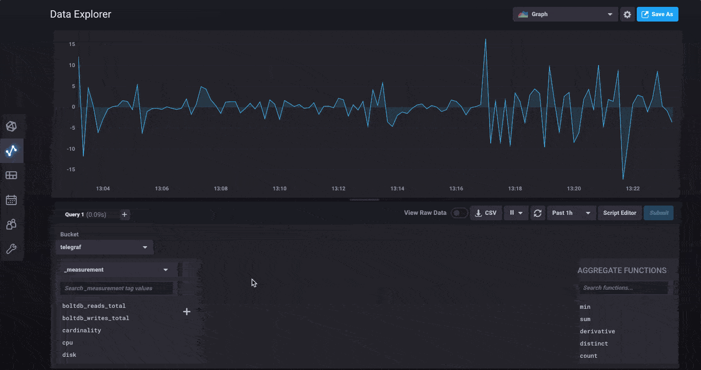 InfluxDB 2.0 has a whole new Data Explorer that makes it easier than ever to quickly visualize your data. The new explorer allows you to harness the flexibility of Flux by allowing you to select any measurement, tag or field you’d like to filter with and going from there. Would you like to see what tags and fields are being collected from a specific host? Simply filter by that host first, then continue refining using additional tags and fields specific only to that host.