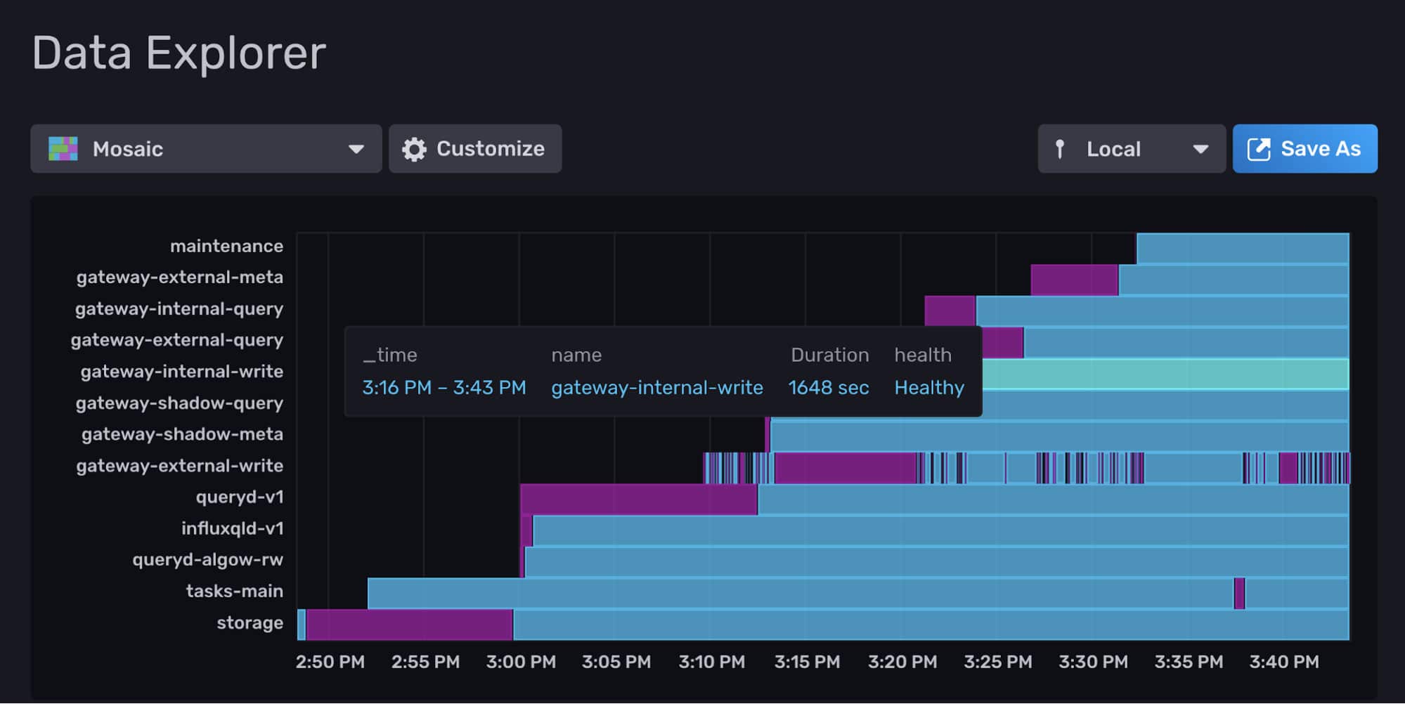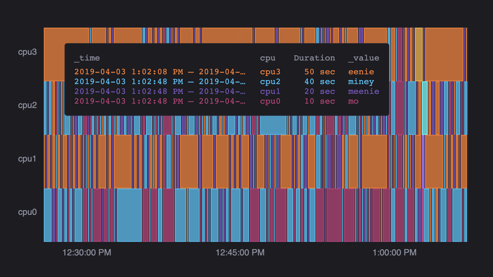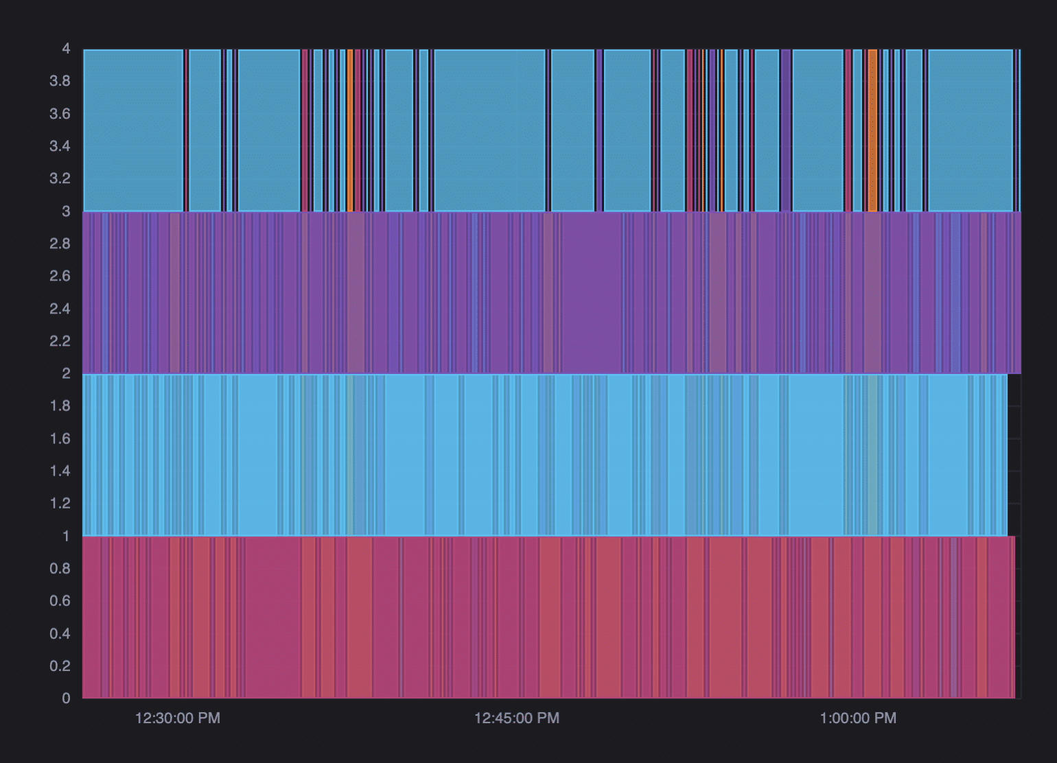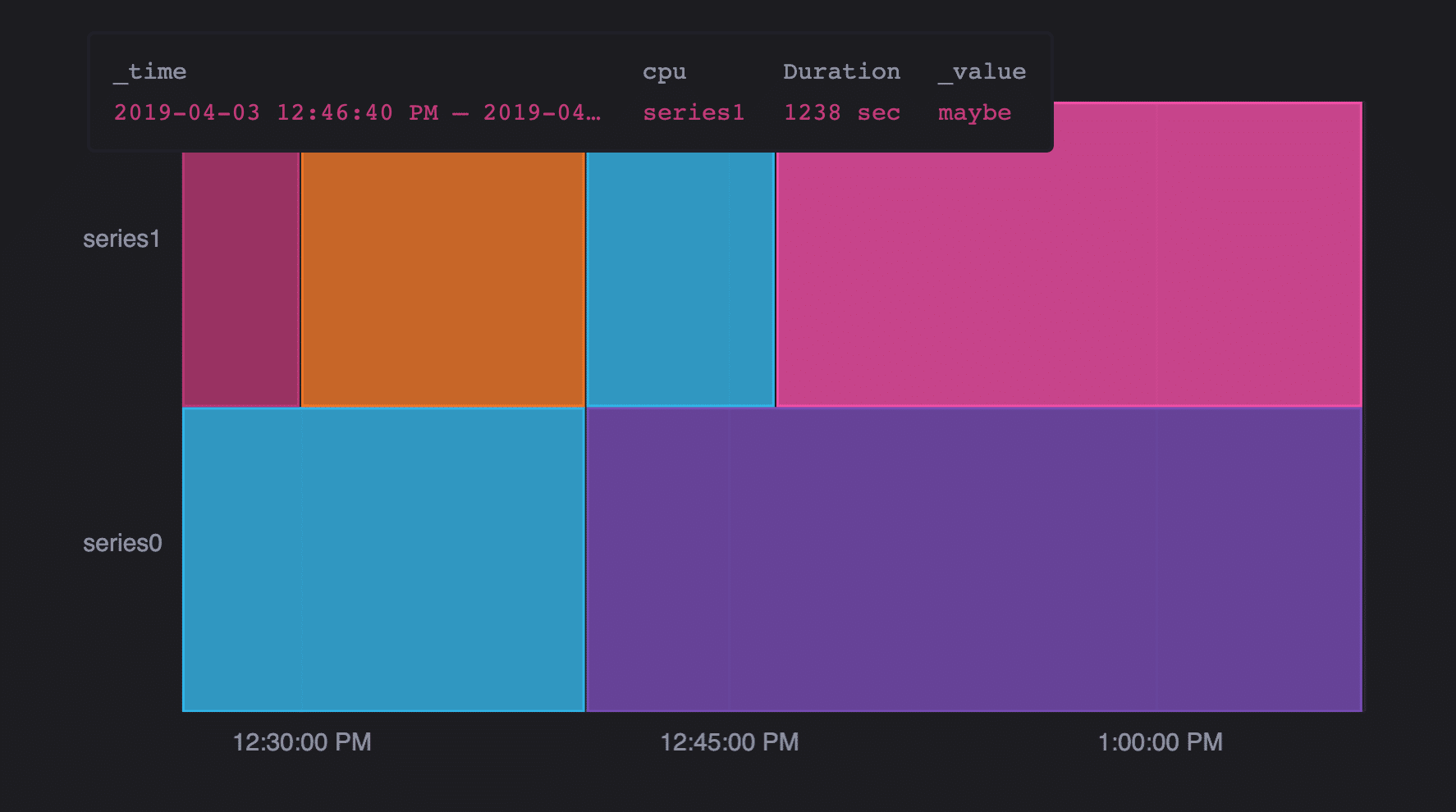 InfluxDB provides several graph type visualizations to allow users to easily monitor their data. However, most of those graph types are only helpful if your data can be represented numerically. What if you want to track the health of your application, or visualize the status of your pods deployed in Kubernetes, over time? In both these cases, status is tracked over time using one of several discrete values, and can’t be plotted on an x/y chart.