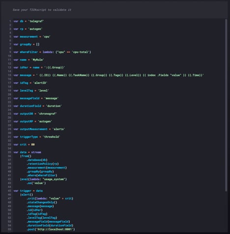 Kapacitor is an integral piece of the InfluxData platform, and in fact as the platform continues to develop, we are looking to Kapacitor to do more and more in terms of data processing and workloads. At the core of these workloads are alerts and downsampling or aggregations. I am often asked by customers as to what is the best way to create TICKscripts for these two types of workloads. So I thought I would take a moment here and provide you with some TICKscript templates you can use as starting points for an alert and a downsample.