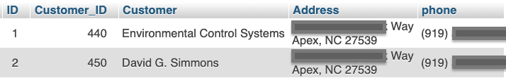 The first thing to do was build a MySQL database with some Customer Information. I created a new database called IoTMeta into which I put a table with some sensor metadata. I also added another table with customer information about those sensors.