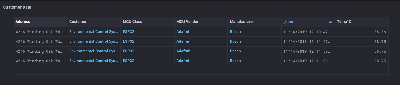 One solution, of course, is to simply add all that stuff as tags to your sensor data in InfluxDB and go on about your day. But do you really want to store all your sensor data with each datapoint? Lots of things seem like a good idea at the time, but then rapidly devolve into a terrible idea when reality hits. Since most of this metadata doesn’t change often, and may also be associated with customer information, the best place for it is very likely in a traditional RDBMS. Most likely you already have an RDBMS with customer data in it, so why not just continue to leverage that investment? As I’ve said repeatedly, this is not the best place for your sensor data. So now you’ve got your IoT data in two different databases. How do you access it and merge it into one place where you can see it all?