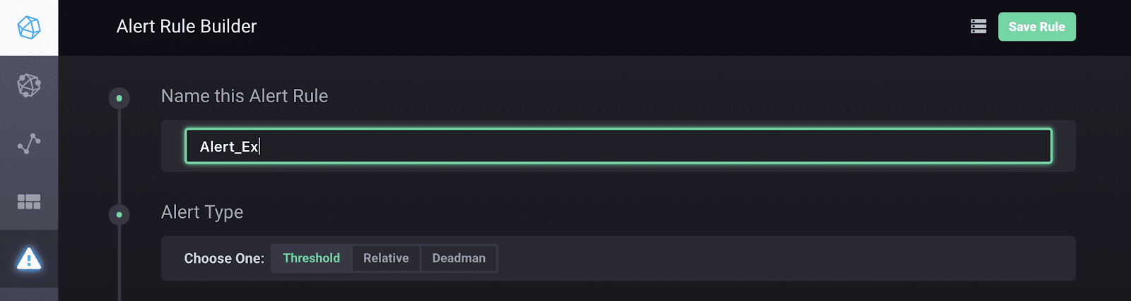Now I can start building my alert rule. I name my alert, select the alert type…